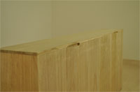 引き出しの底板、側板、後ろ板は、総て 『桐無垢板』を使用し、木釘で作ってあります。 |